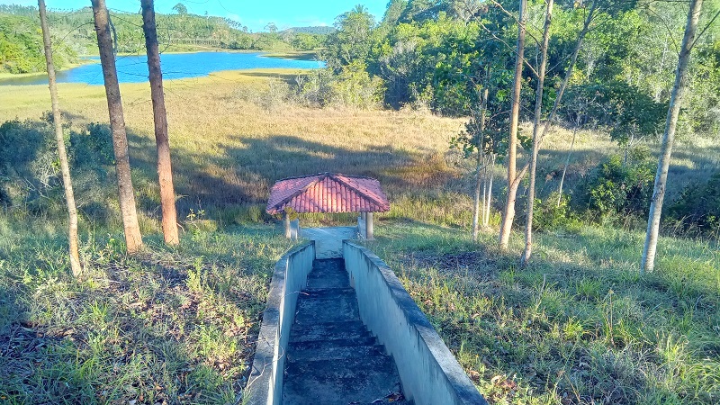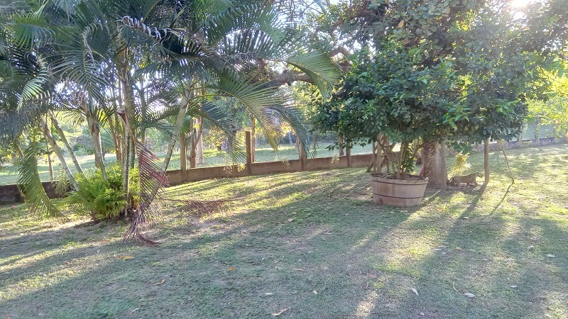 8,55 tarefas (3,72 hectares), excelente sítio em condomínio rural, casa sede de andar, toda mobilhada, 04 suites com ar-condicionado, garagem para 02 carros, despensa com armários novos, canil, casa de hóspedes com 03 quartos, piscina, fogão à lenha, casa de caseiro, jardim, horta, pomar, nascente, represa, energia elétrica, energia solar, água encanada (Poço artesiano), um paraíso para morar ou fugir do estresse.