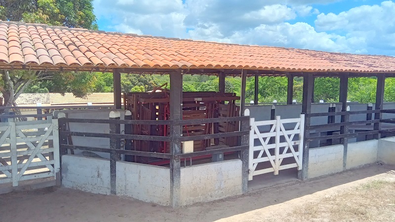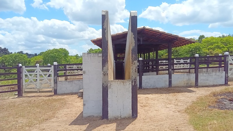 146 tarefas (63,5 hectares), fazenda pronta, casa sede com sala, cozinha, 02 quartos, 01 suíte, 02 banheiros, garagem para 03 carros, quiosque com churrasqueira, piscina, kitnet anexa com sala, cozinha e 01 quarto, casa de vaqueiro, curral novo com capacidade para 150 cabeças, brete automático, embarcador, poço artesiano com vazão de 10.000 litros/hora, energia elétrica, 102 tarefas de pasto com 29 piquetes para pastejo rotacionado, represa, corredores, cercas novas, 44 tarefas de mata nativa (Reserva legal).