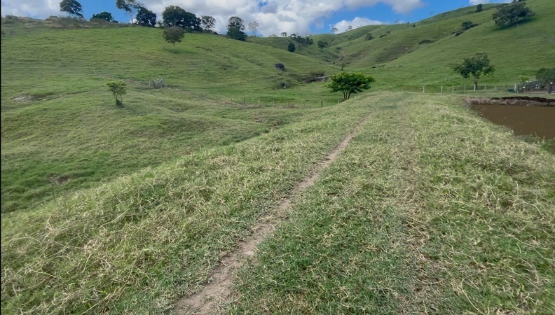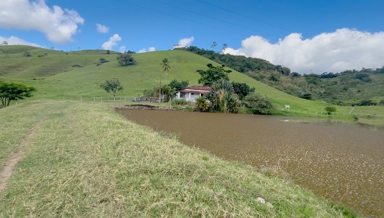 84 tarefas (36,56 hectares), casa sede, pomar, casa de vaqueiro, energia elétrica, curral coberto e calçado, divisões com boas pastagens, represa.