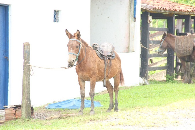 06 burros para trabalho, implementos agrícolas (Roçadeira, motopoda, motosserras e perfurador).