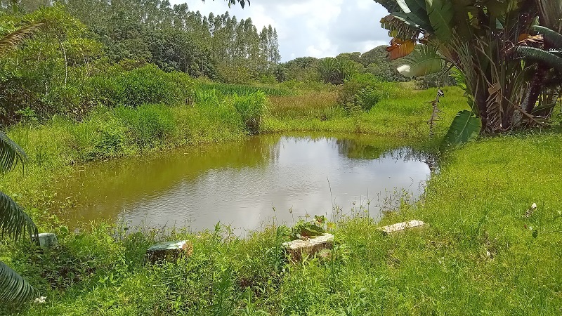 Área plana para plantio de hortaliças irrigada, galpões para frangos ou galinhas poedeiras.
